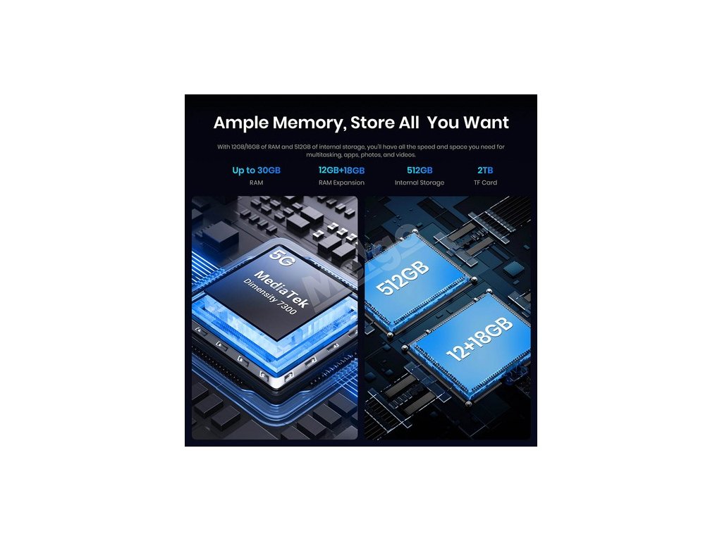 F107 Pro je poháněn čipovou sadou MediaTek Dimensity 7300 (4nm) 5G a až 30 GB paměti RAM, takže bez problémů zvládá multitasking. Všechna svá dobrodružství můžete uložit do 512GB interního úložiště (s možností rozšíření až na 2 TB).