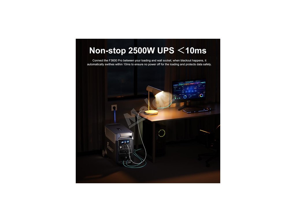 Díky nejmodernější technologii rychlého nabíjení dosáhne F3600 Pro plného nabití za pouhých 1,5 hodiny, a to díky schopnosti zvládnout až 4200 W nabíjecího výkonu. Tato bezkonkurenční rychlost nabíjení vám zaručí, že budete vždy připraveni na další dobrodružství nebo nouzovou situaci.