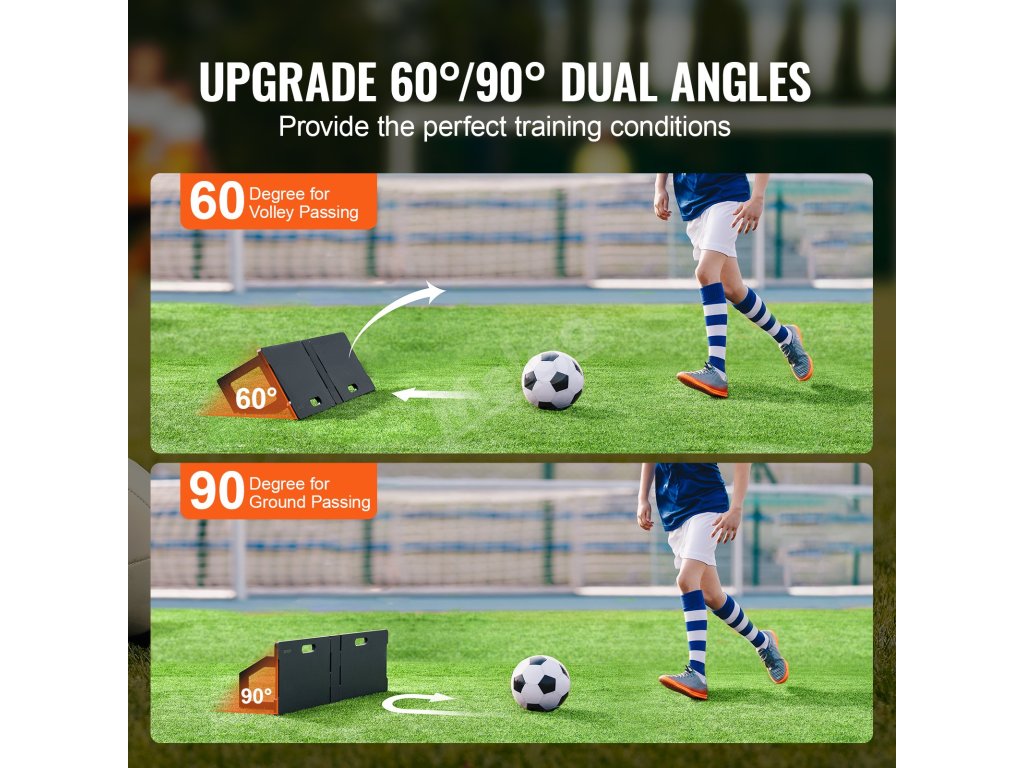 Odraznou desku lze snadno přepínat mezi dvěma úhly. Při úhlu 90° se míč odráží od země a simuluje přihrávku na zemi, zatímco při úhlu 60° se míč může odrážet ve vzduchu a procvičovat tak volejbal, hlavičkování, střelbu a odraz.
