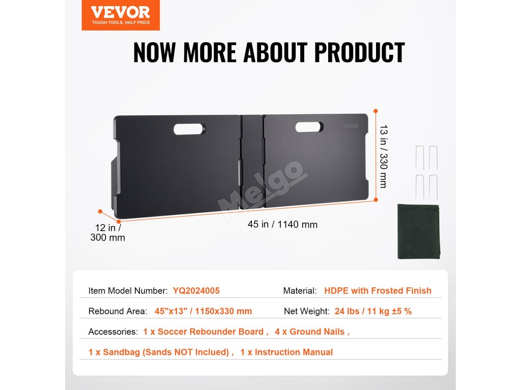 Fotbalová odrazová deska 45"×13" z hdpe, skládací, 2 úhly, ke střelbě