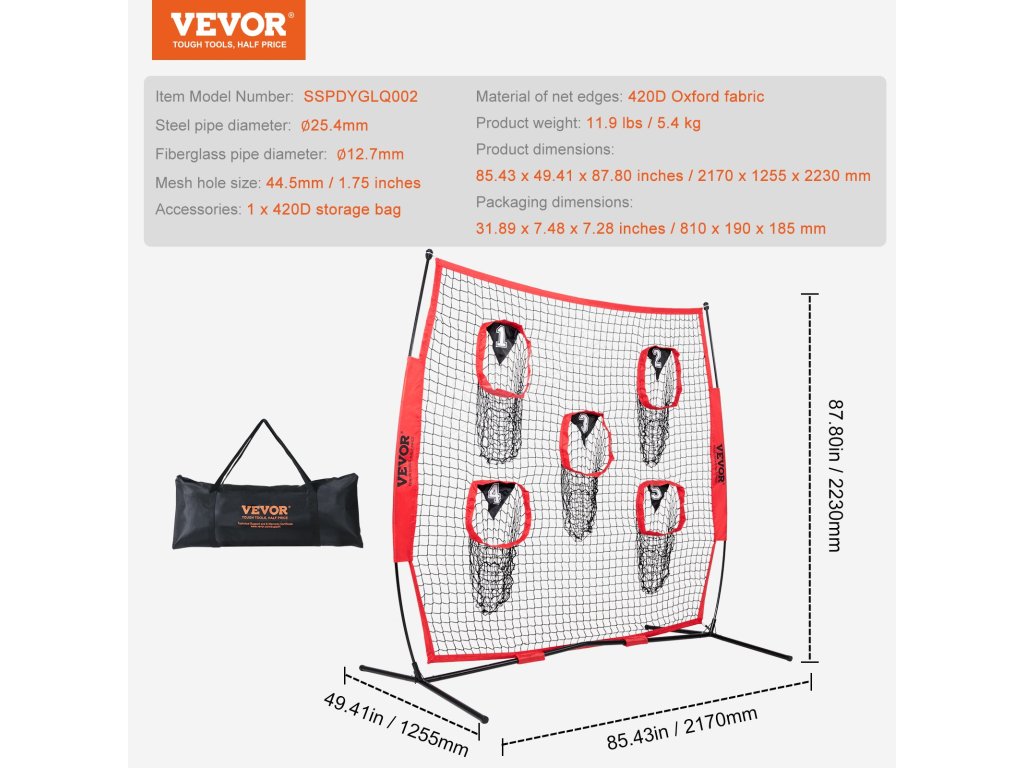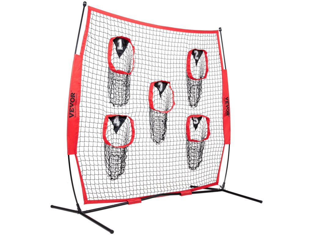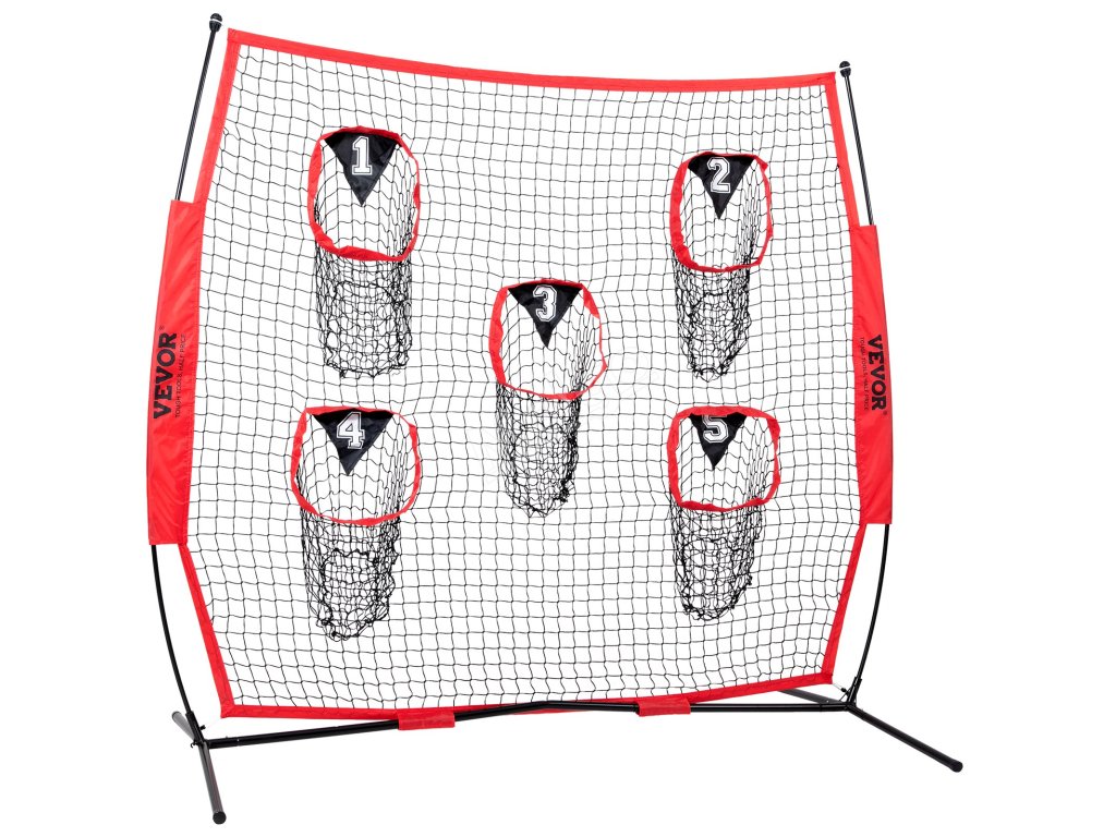 Tréninková fotbalová síť na házení na terč má velkou síť o rozměrech 7 × 7 stop a 5 terčových kapes, které vám umožní házet míč z různých směrů a vzdáleností.