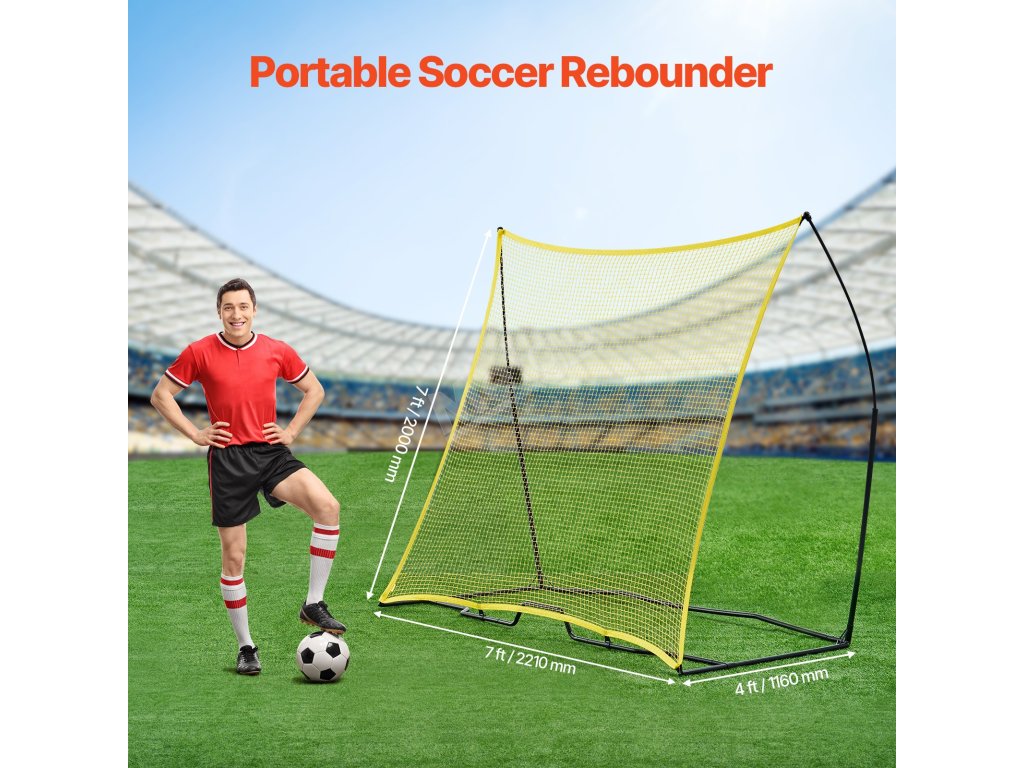 Fotbalový odrazový panel 7×7FT, železo a polyester, přenosný