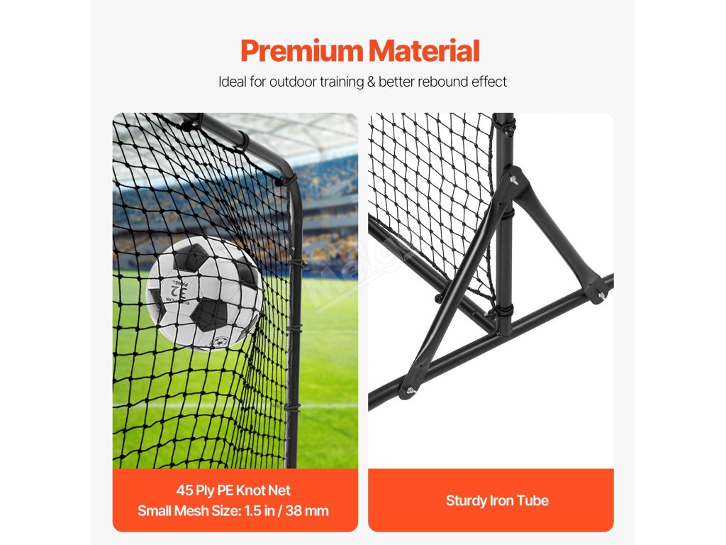 Fotbalový odrazový trenažér 6×4FT železný, dvoustranná síť, montáž