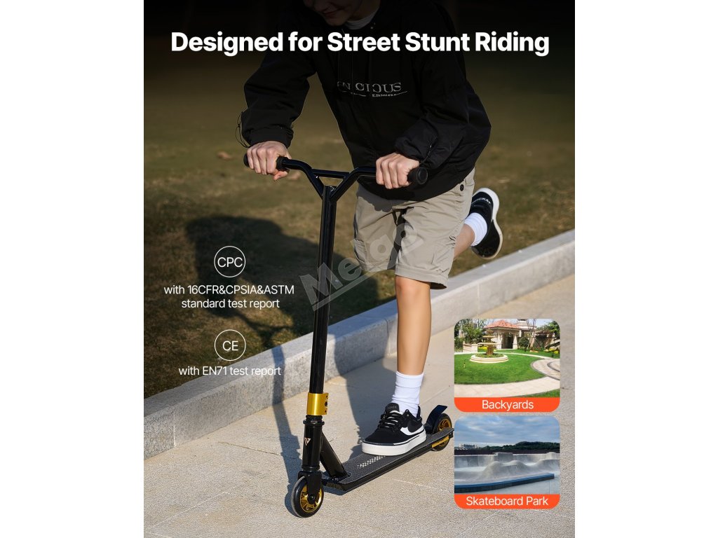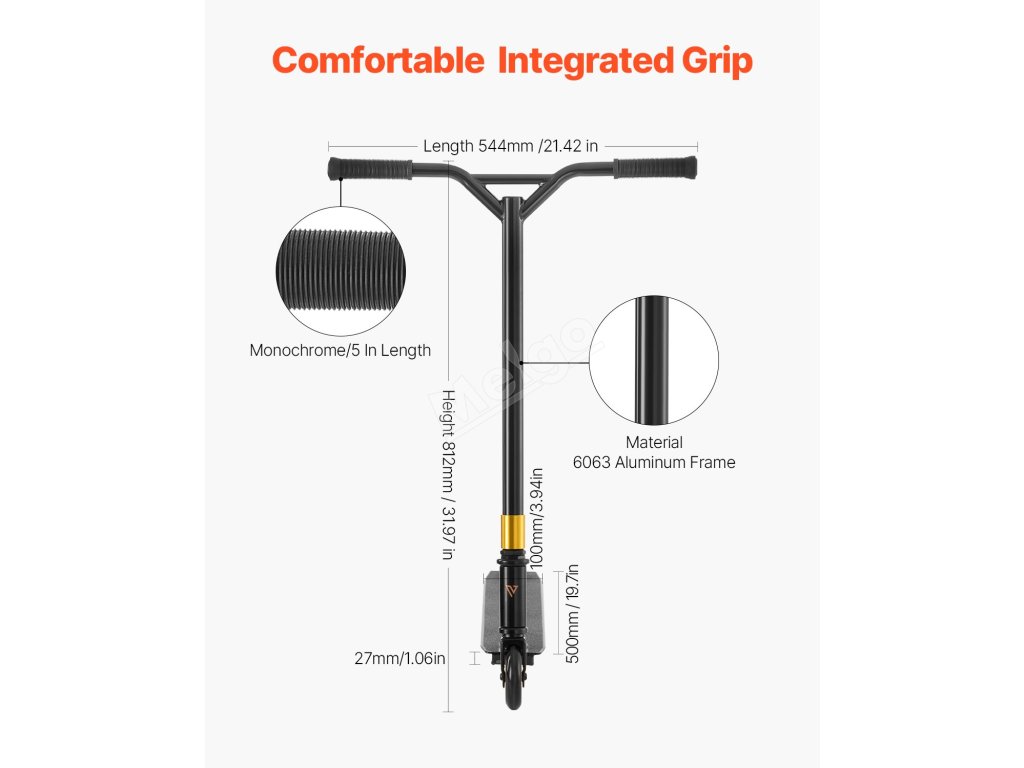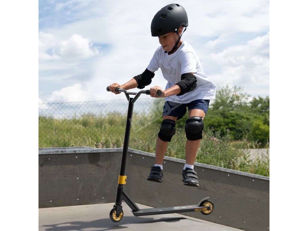 Táto triková kolobežka je navrhnutá špeciálne pre mladých začiatočníkov. Táto kolobežka je ideálnou voľbou, či už sa kĺžete po chodníku alebo sa pripravujete na jazdu v skateparku. Plne vybavená na jednoduchý vstup do sveta kolobežiek.