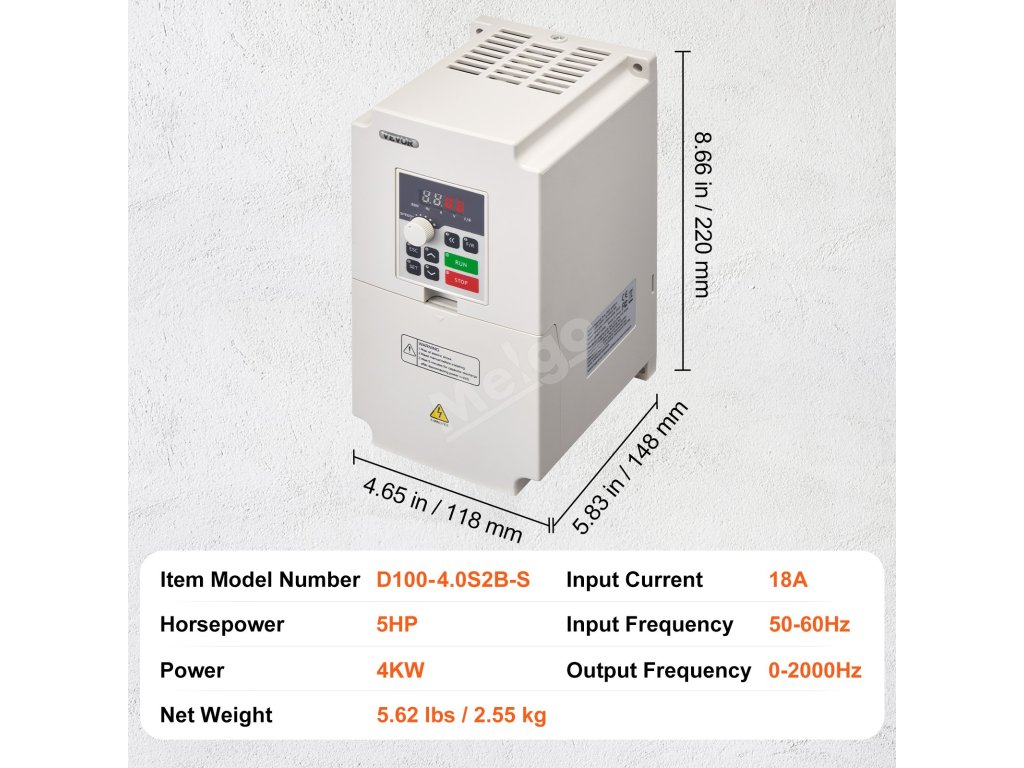 Vstupem VFD je jednofázový střídavý proud 220 V (1PH) nebo třífázový střídavý proud 220 V (3PH) a výstupem je třífázový střídavý proud 0~220 V (3PH). Díky jednoduchému zapojení, intuitivnímu displeji a komplexním ochranám zjednodušuje obsluhu, zvyšuje energetickou účinnost a minimalizuje poruchy stroje.