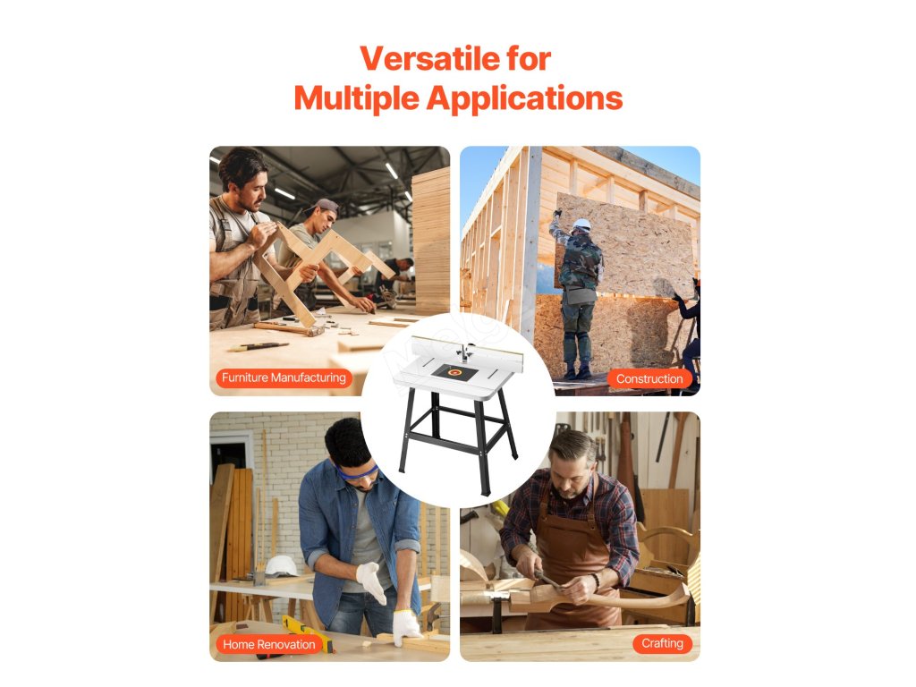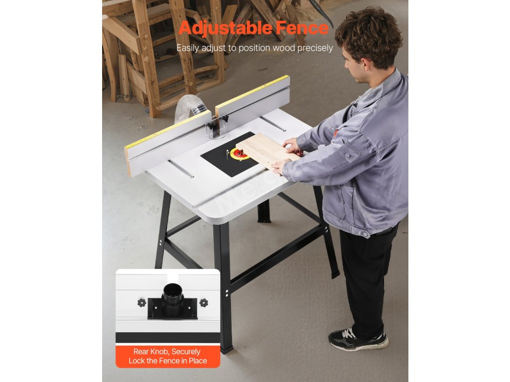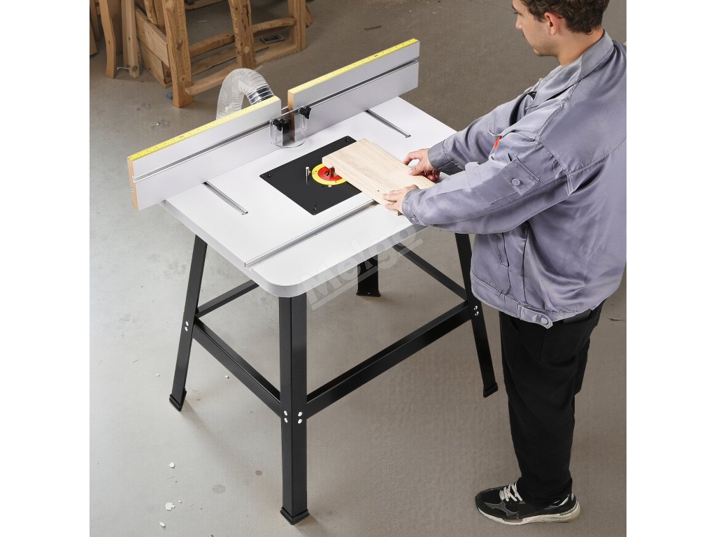 Tento frézovací stůl má kovovou základnu pro pevnou oporu. Nastavitelný plot zajišťuje přesné polohování dřeva pro přesné řezy. Otvor pro zachytávání prachu udržuje pracovní plochu čistou. Je kompatibilní s různými frézami a vrtáky a umožňuje snadné řezání, ořezávání, vrtání a tvarování.