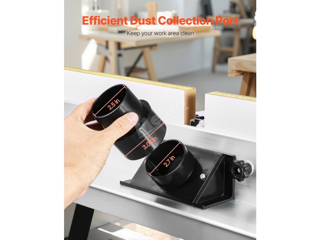 Je vybaven průhledným krytem a otvorem pro zachytávání prachu, takže čištění je hračka. Průhledný ochranný kryt blokuje odletující nečistoty, zatímco otvor pro zachytávání prachu po připojení k hadici účinně odsává piliny a udržuje váš pracovní prostor čistý a uklizený.