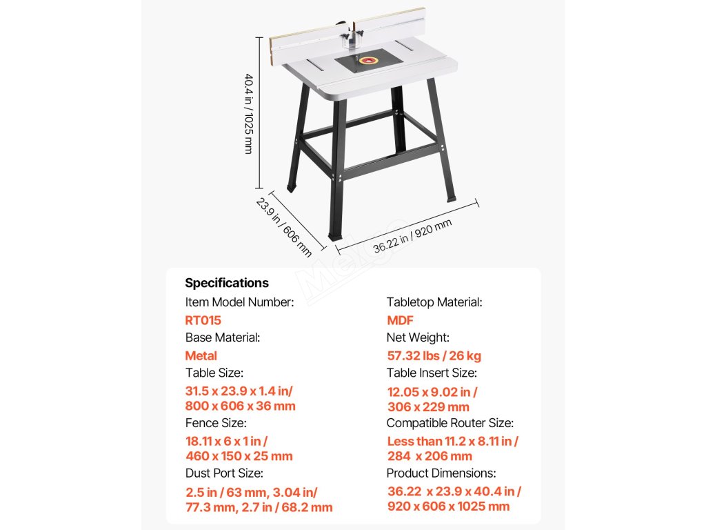 Tento frézovací stůl s deskou z MDF je hladký a rovný, takže vydrží dlouho. Je vybaven kovovou základnou, která poskytuje pevnou a spolehlivou oporu a zaručuje odolnost a vysokou nosnost po mnoho let.