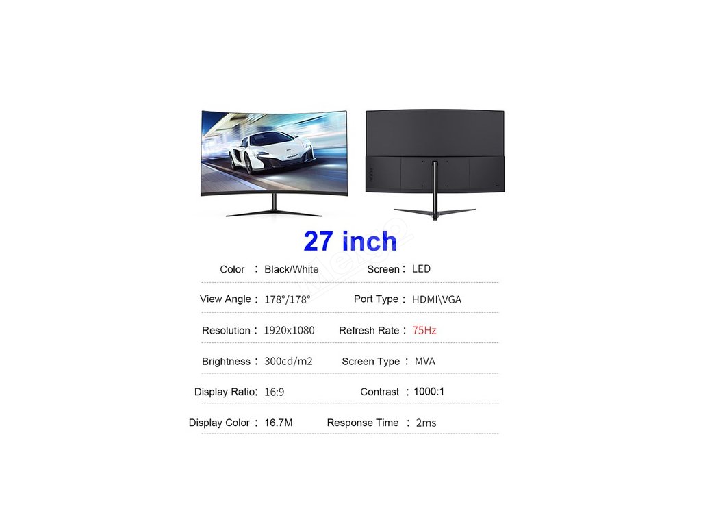 FYHXele FY27FMC-B je vybaven zakřiveným panelem MVA s rozlišením 1920x1080 FHD. Poměr stran 16:9, pozorovací úhel 178°, obnovovací frekvence 75 Hz.