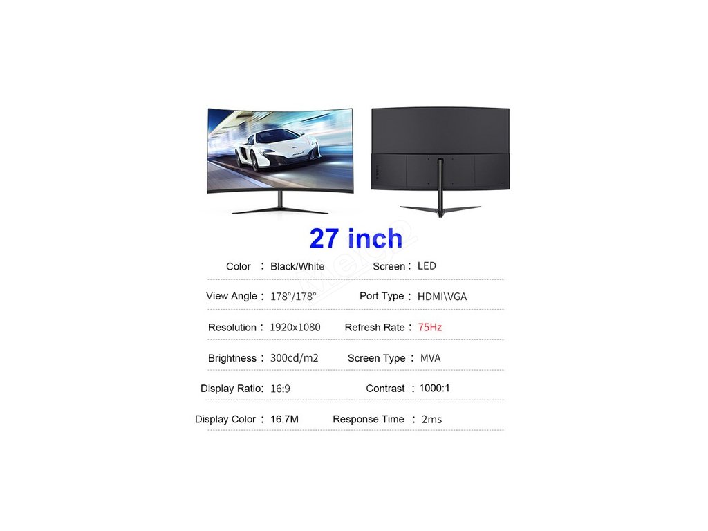 FYHXele FY27FMC-B je vybaven zakřiveným panelem MVA s rozlišením 1920x1080 FHD. Poměr stran 16:9, pozorovací úhel 178°, obnovovací frekvence 75 Hz.