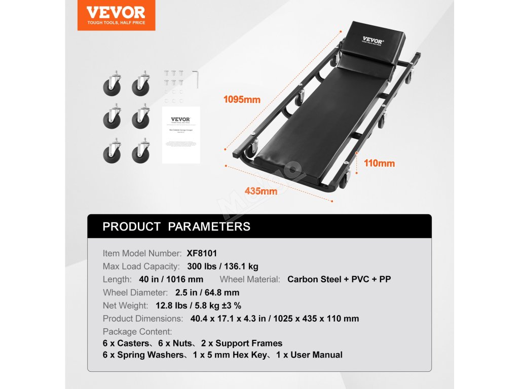 Tento plíživý automobilový nástavec je ideální do garáže nebo opravny, kde vás během údržby udrží mimo znečištěné podlahy, takže vaše pracovní prostředí bude čistší a pohodlnější.