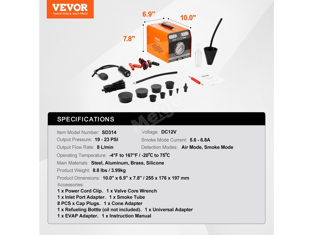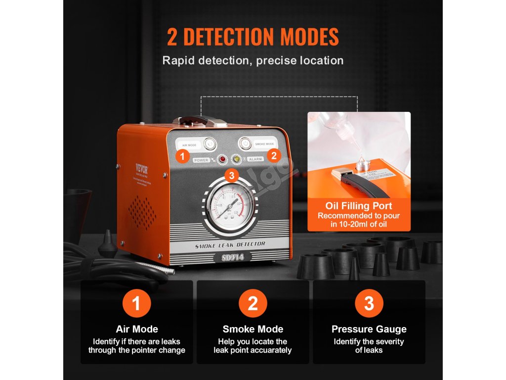 Nejlepší společník pro testování těsnosti! Automobilový kouřový přístroj VEVOR je navržen tak, aby zvládl různé diagnostické úkoly. Tento přístroj je ideální pro osobní automobily, motocykly, čtyřkolky a lehká nákladní vozidla a snadno pokryje vaše diagnostické potřeby.