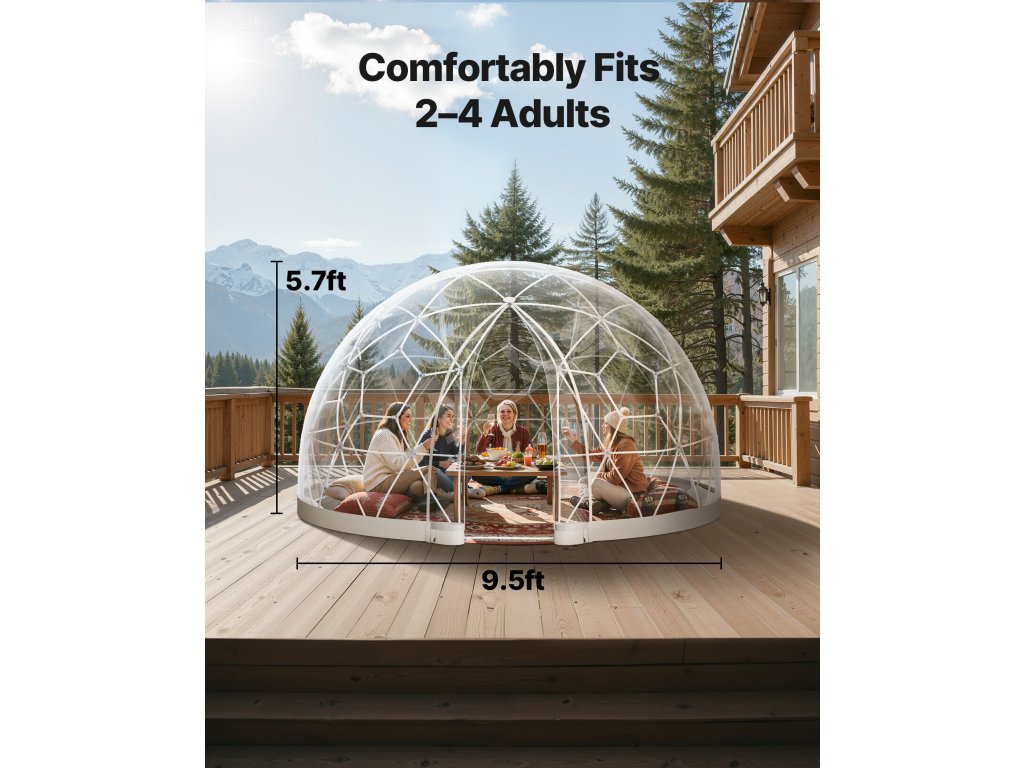 Geodetický bublinový stan 2.9 × 1.75 m, pvc, 2–4 osoby, s oknem