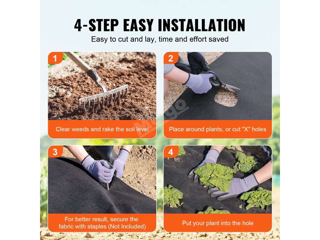 Nenechte si už zahradu ničit plevelem! Tato geotextilie se snadno stříhá a instaluje. Zahradní bariérovou tkaninu proti plevelu si můžete pohodlně vyrobit sami podle velikosti a tvaru tkaniny tak, aby vyhovovala vašim různým potřebám (instalační nářadí není součástí balení)