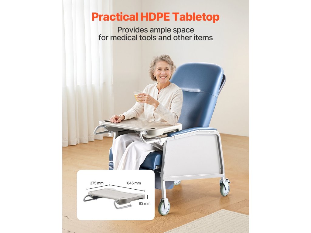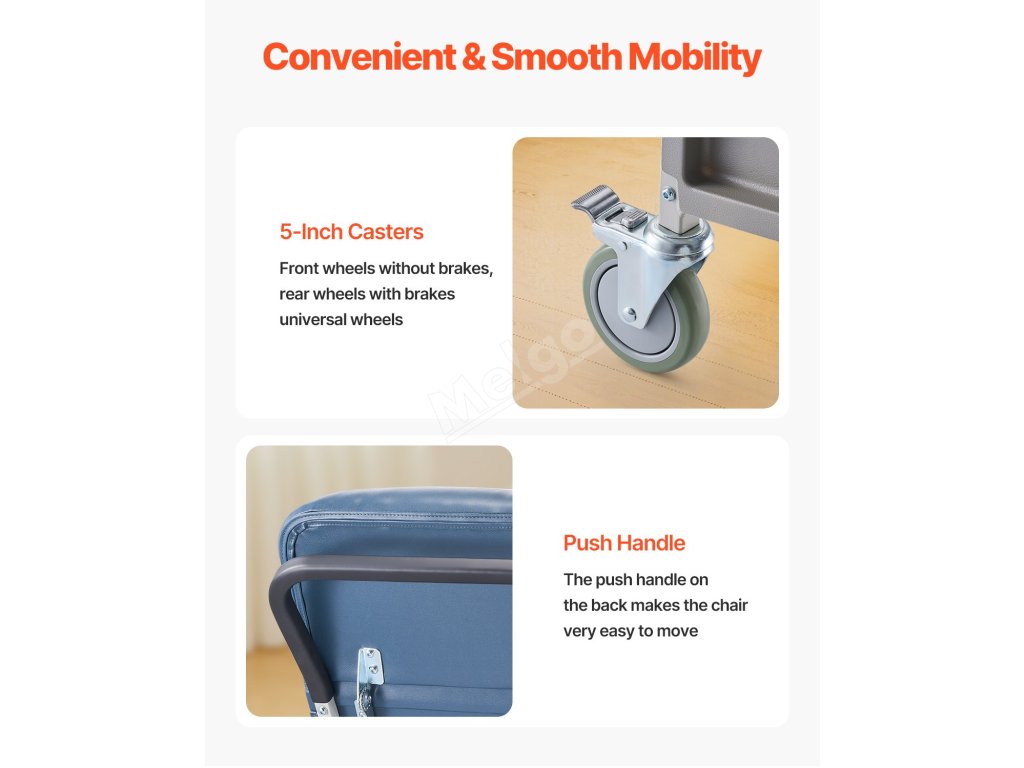 Toto polohovatelné křeslo pro geri je navrženo ve 3 nastavitelných polohách, které vyhovují různým potřebám. Nastavte jej do vzpřímené polohy pro jídlo nebo konverzaci, do polohy hlubokého lehu pro odpočinek a relaxaci nebo do polohy se zvýšenou opěrkou nohou pro zmírnění tlaku a zlepšení krevního oběhu.
