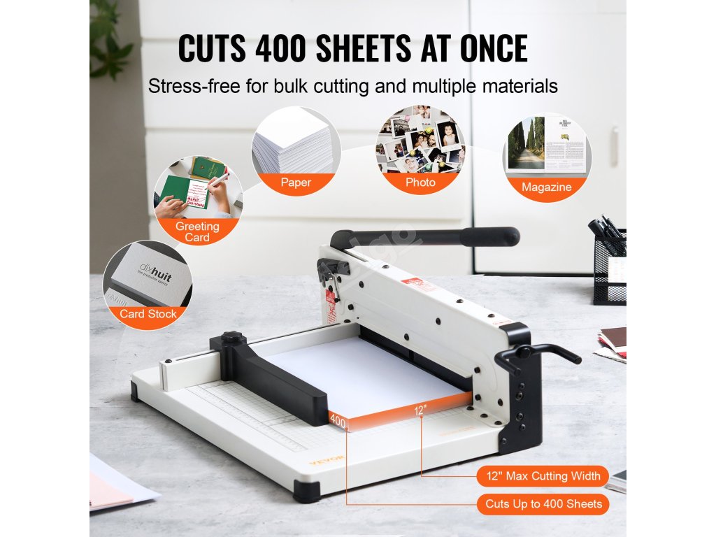 S vysoce výkonnou řezačkou VEVOR snadno rozřežete 400 listů papíru - řezání velkého množství je hračka!