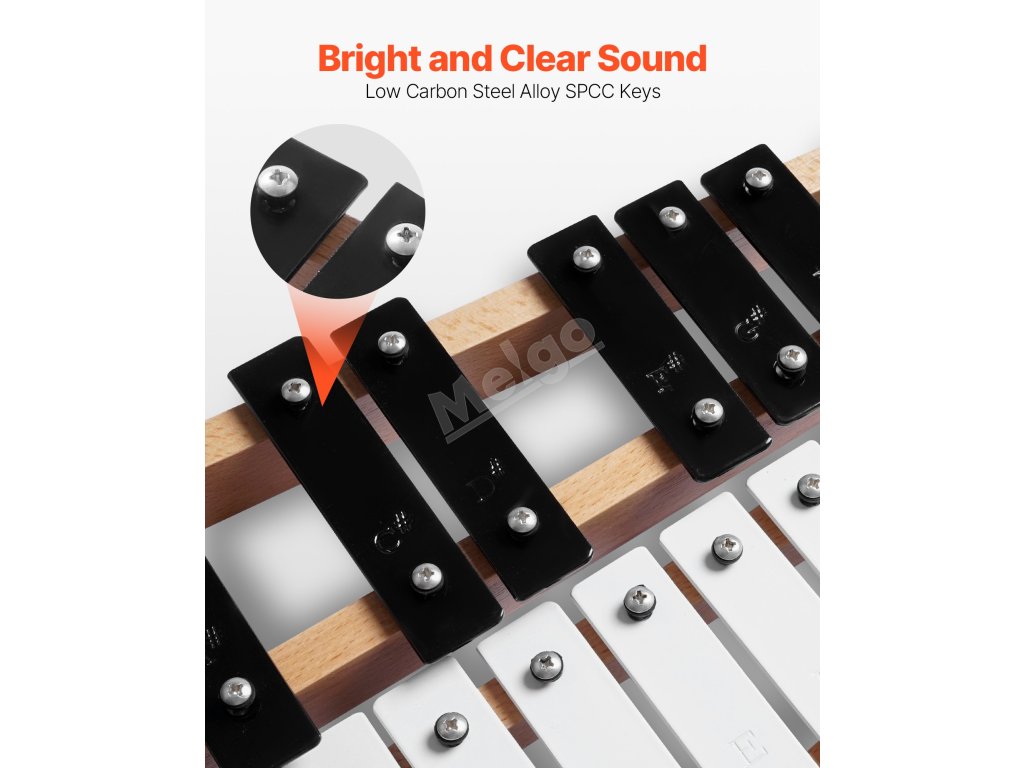 Klávesy z materiálu SPCC mají pevnou kovovou strukturu a hladký dotyk. Profesionální povrch xylofonu s povrchovou úpravou nástřikem odolává otiskům prstů, vyblednutí a poškrábání - krása a funkčnost jsou vyváženy v každém detailu.