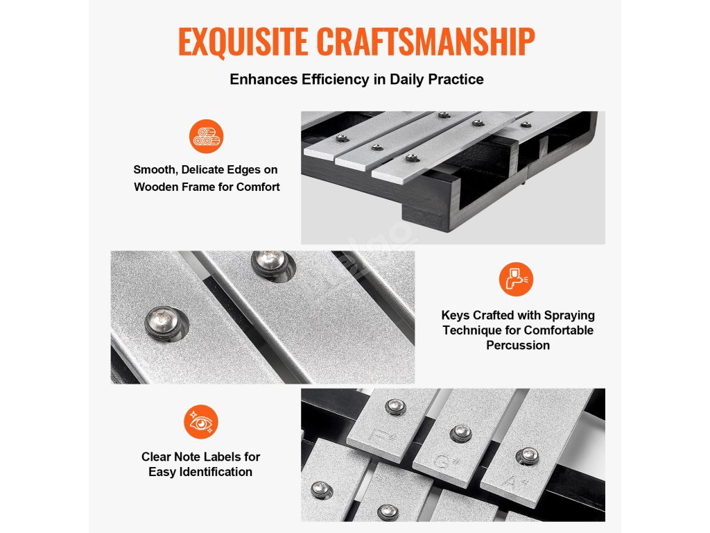 Jedním nákupem získáte vše, co ke hře potřebujete. Získáte: Profesionální xylofon s 30 notami x1, paličky x4, taška na přenášení x1; splní vaše každodenní cvičení, školní osnovy a potřeby kapely.