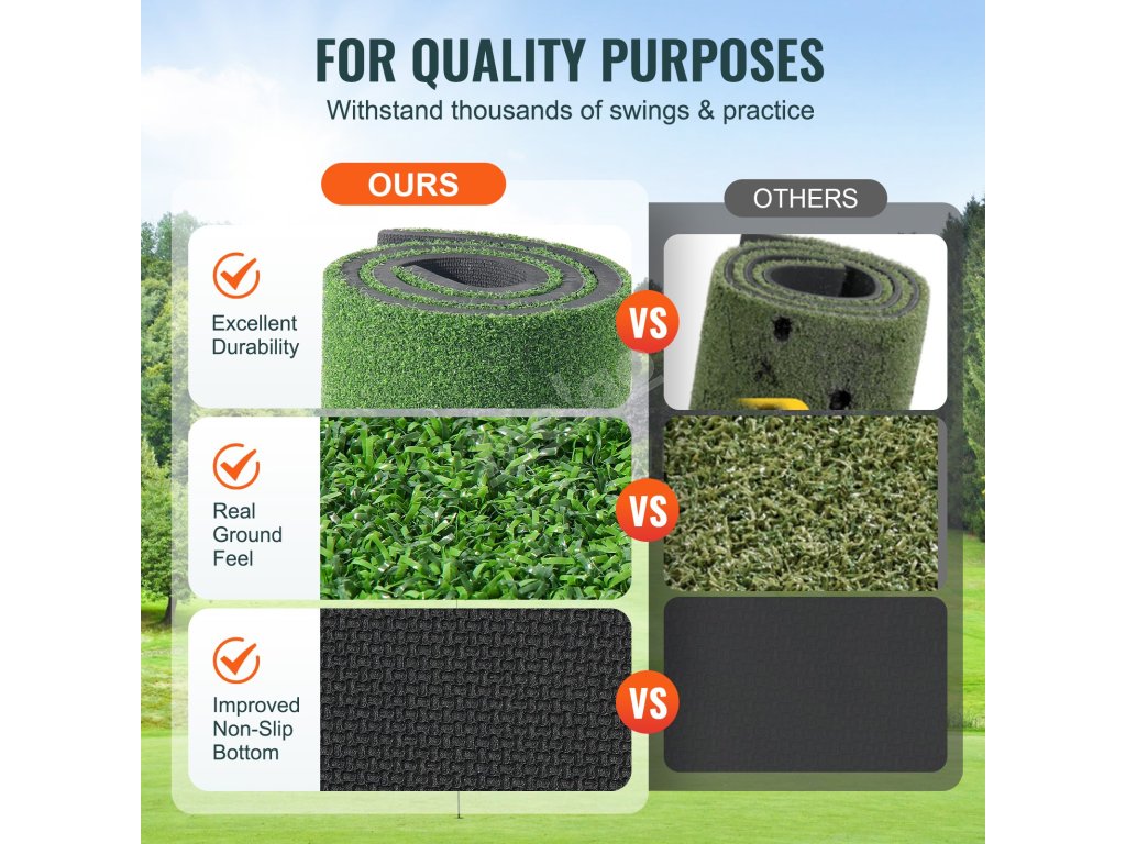 Naše podložka pod golfové odpaliště je navržena s ohledem na trvanlivost a výkon a vydrží tisíce švihů a cvičných odpalů, aniž by se zhoršila. Vylepšená protiskluzová spodní část z materiálu EVA+PE zajišťuje stabilitu a bezpečnost při používání.