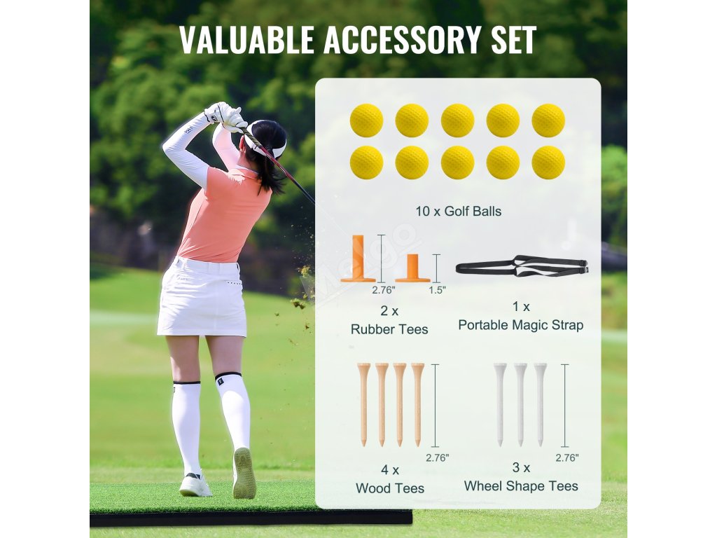 Golfová odpalovací podložka 5×4ft umělý trávník, 10 míčků, 9 pegů