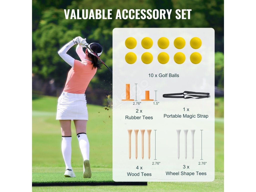 Golfová odpalovací podložka 5×4ft umělý trávník 10 míčků 9 tee