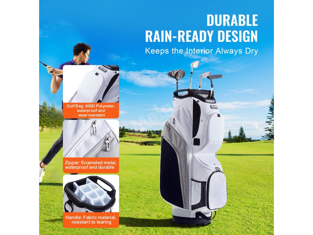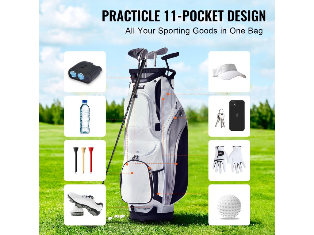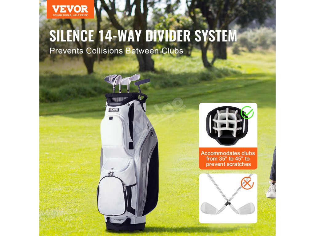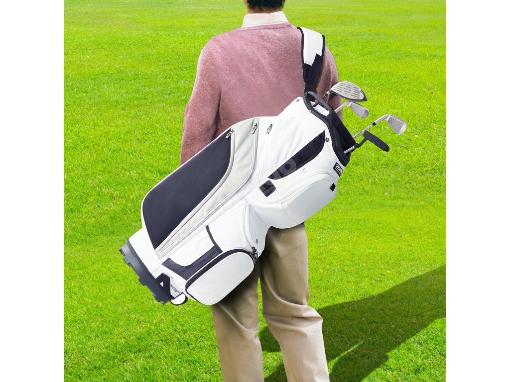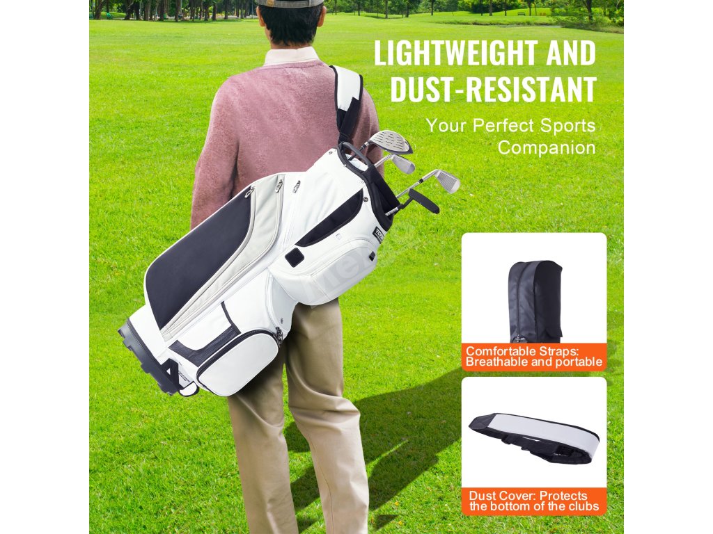 Vyztužený golfový vak, vodotěsný a odolný. Náš golfový bag se 14cestným dělícím systémem a mnoha kapsami vám umožní uložit hole do oddělených přihrádek a uspořádat si různé sportovní vybavení. Díky tomu bude váš golfový trénink pohodlnější a bez starostí!