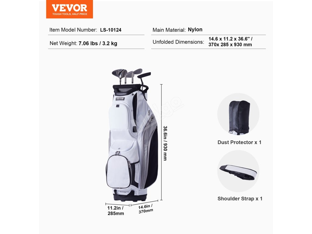 Golfová taška na vozík, 14-komorový vrch, 36”, 13 vreciek, nylon