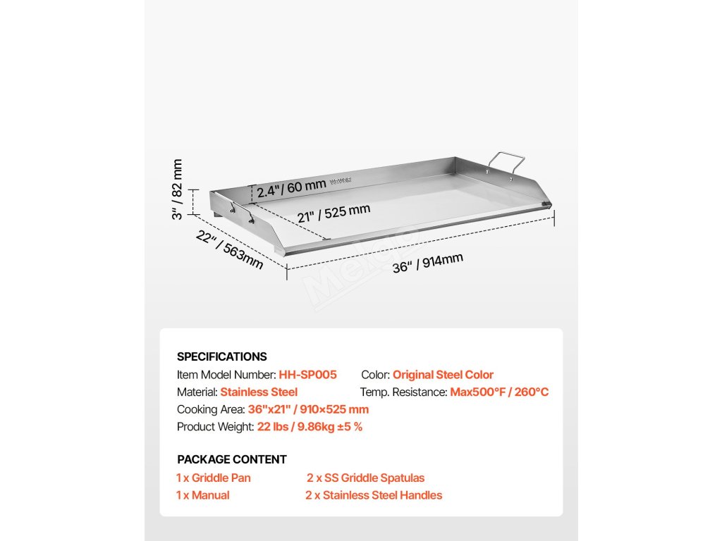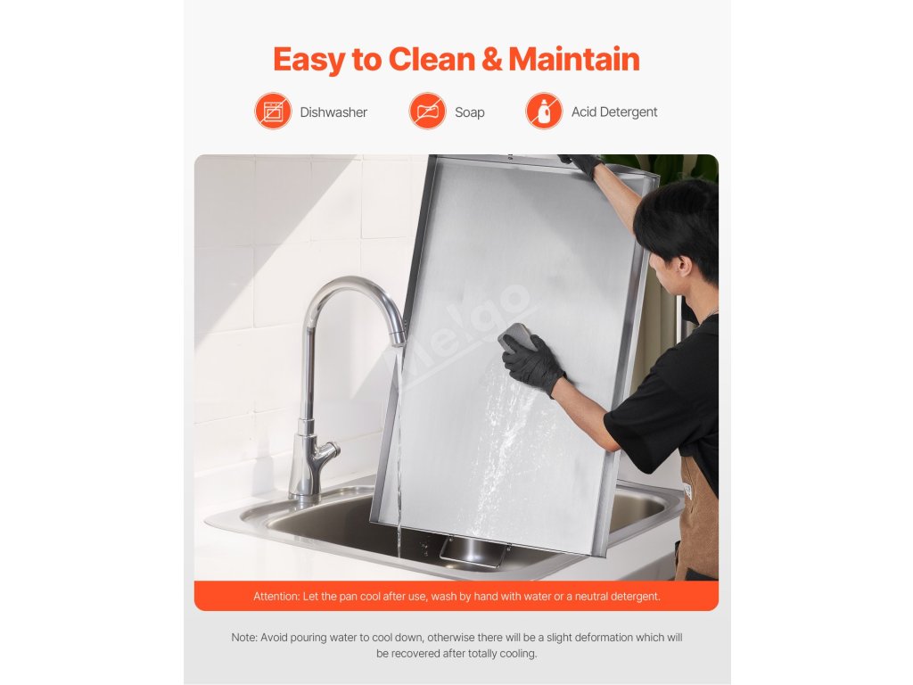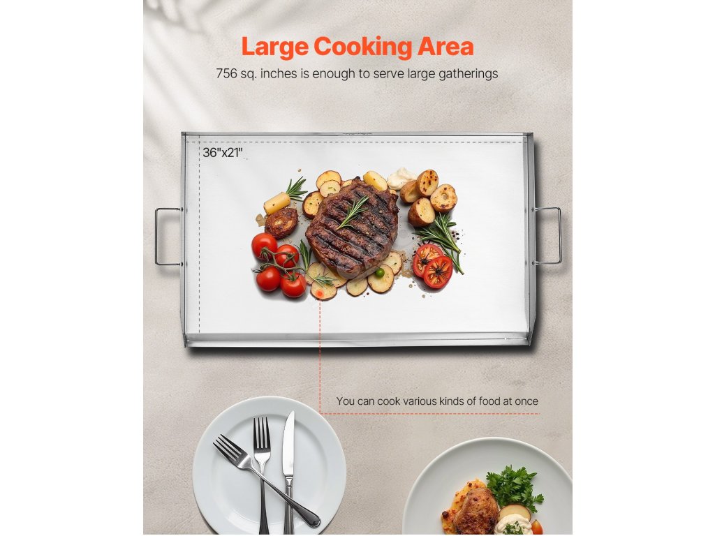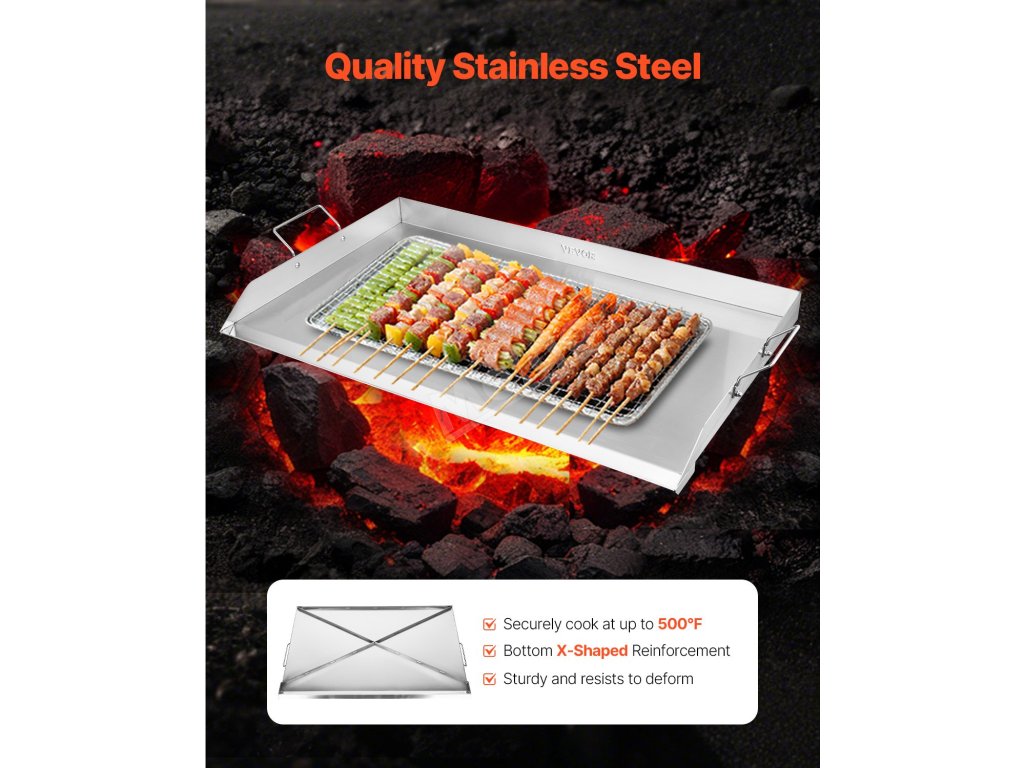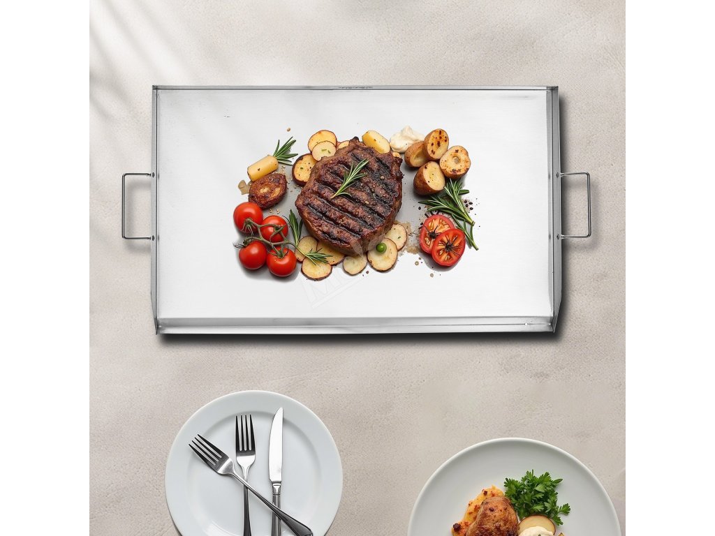 Grilovací deska z nerezavějící oceli 36×22 inch, rovná, s držadlem