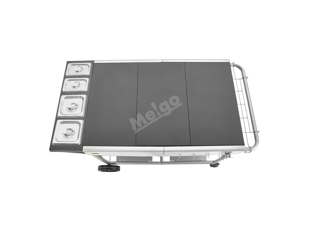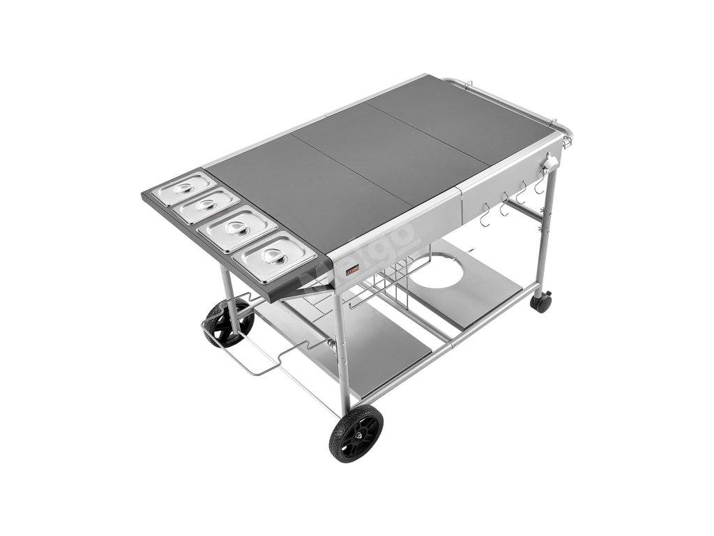 Grilovací stolek 925×595×25mm se 4 nádobkami, kolečka, víčka