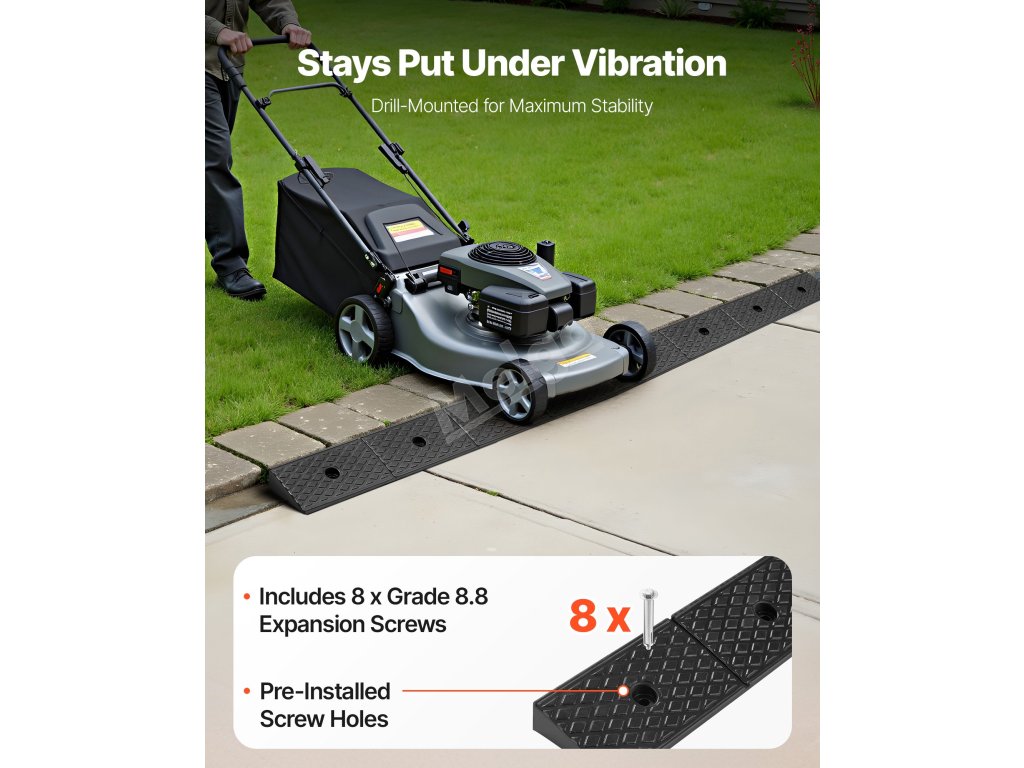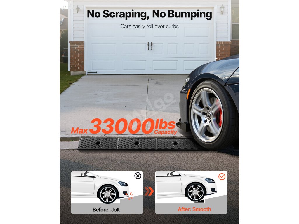 Tato nájezdová rampa unese až 15 tun a pomáhá pickupům a SUV hladce vjíždět do garáží bez poškození pneumatik nebo podvozku. Obrubníky a schůdky jsou rovné a snadno sjízdné.