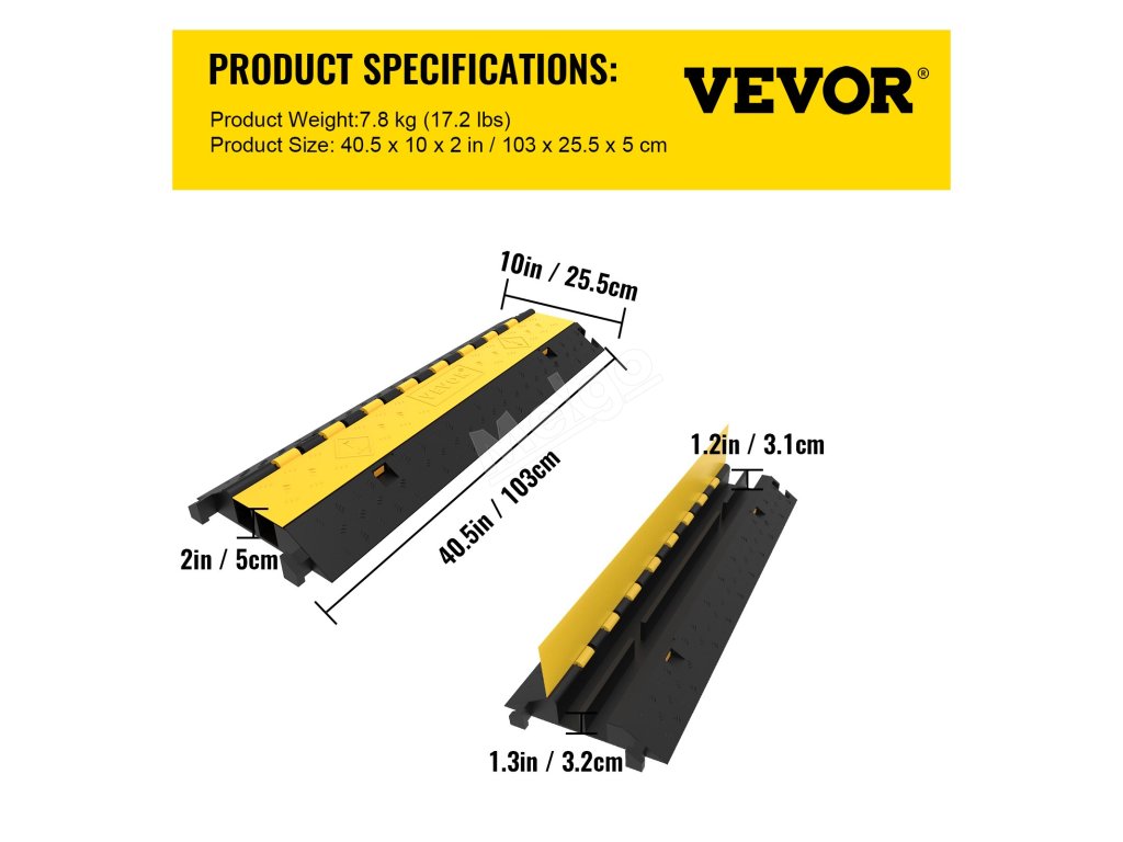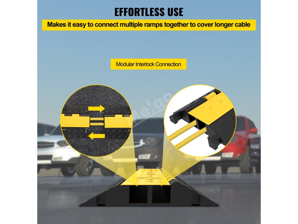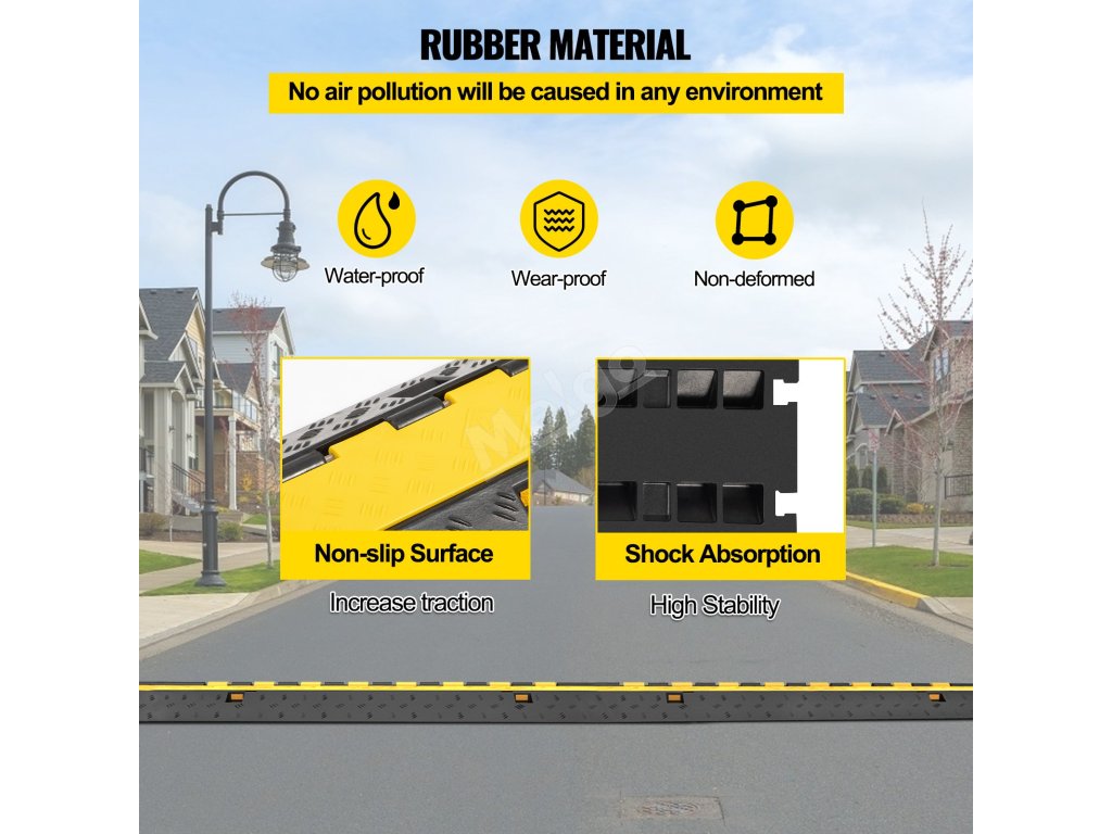 Rampy na káble VEVOR sú účinné rýchlostné nárazníky. Sú navrhnuté tak, aby spomaľovali vozidlá a znižovali riziko poškodenia kábla. Vďaka ich žiarivo žltej farbe sú dobre viditeľné a upozorňujú vodičov. Táto viditeľnosť pomáha predchádzať nehodám a udržiavať bezpečnosť. Odolné káblové nájazdy majú pevnú konštrukciu, ktorá ich udrží na mieste. Aj po opakovaných prejazdoch vozidiel si zachovávajú svoj tvar. Aj konštrukcia rýchlostných rámp znižuje náraz na káble. Je to užitočné najmä v oblastiach, kde je častý pohyb vozidiel. Používanie týchto nájazdových systémov pomáha predĺžiť životnosť vašich káblov. Tieto prvky sú základným bezpečnostným opatrením pre každú príjazdovú cestu alebo parkovisko.