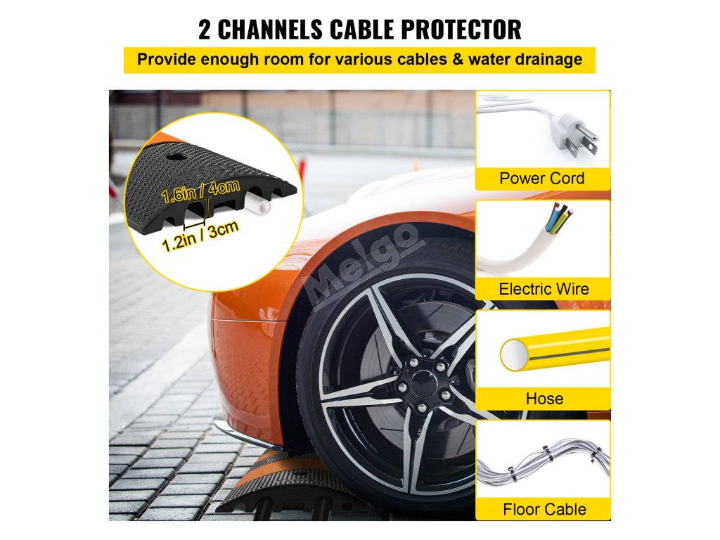 Gumový zpomalovací práh se 2 kanály na kabely 185×31×5.5 cm (6 ft)