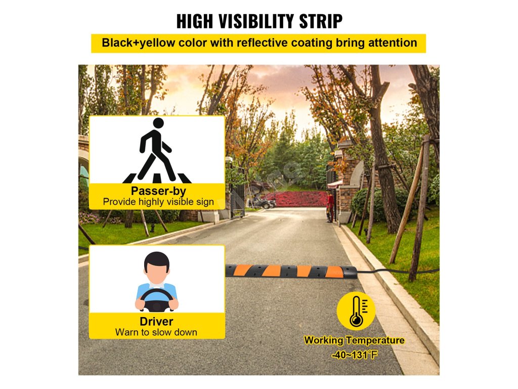 Barva kabelové ochranné rampy je viditelná žlutá + černá a může chodcům i vozidlům připomínat bezpečné přecházení v kteroukoli denní i noční dobu.