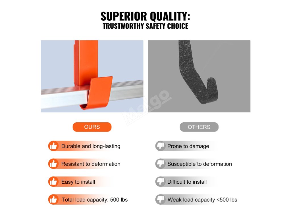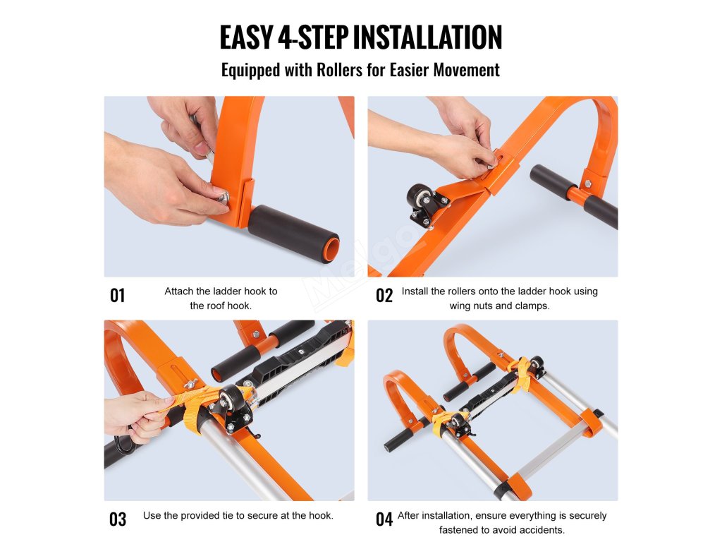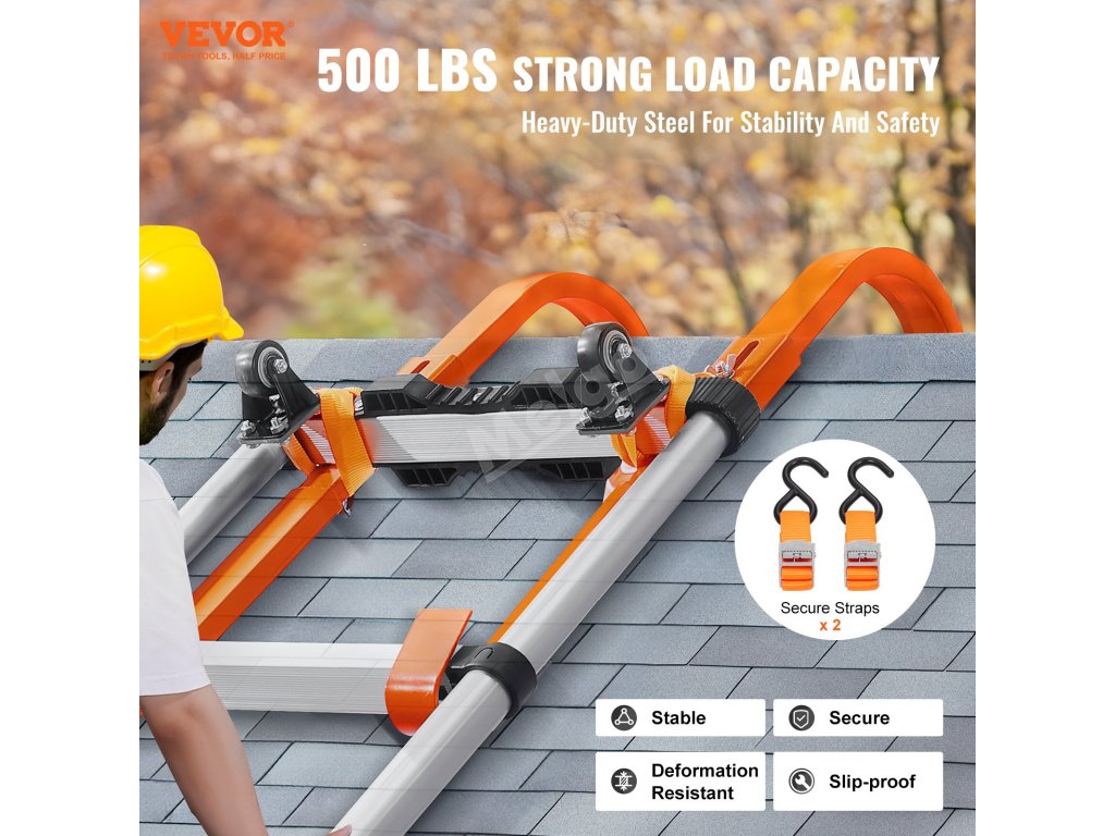 Náš hák na žebřík je navržen pro mnohostranné použití a díky své stabilitě podporuje čištění střech, venkovní projekty, renovace interiérů a venkovní dekorace. Nedoporučuje se používat na střechách s hřebenovými větracími otvory.