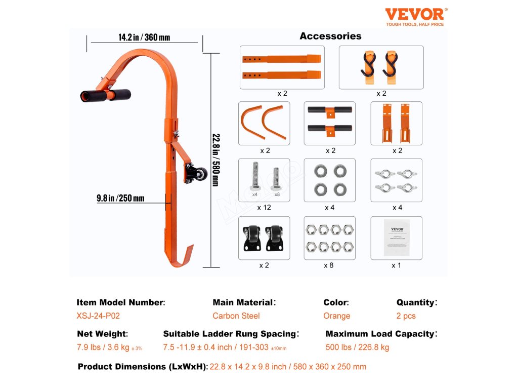 Háky na střešní žebřík 2 ks ocelové s kolečkem, gumová t-tyč, 500 lbs
