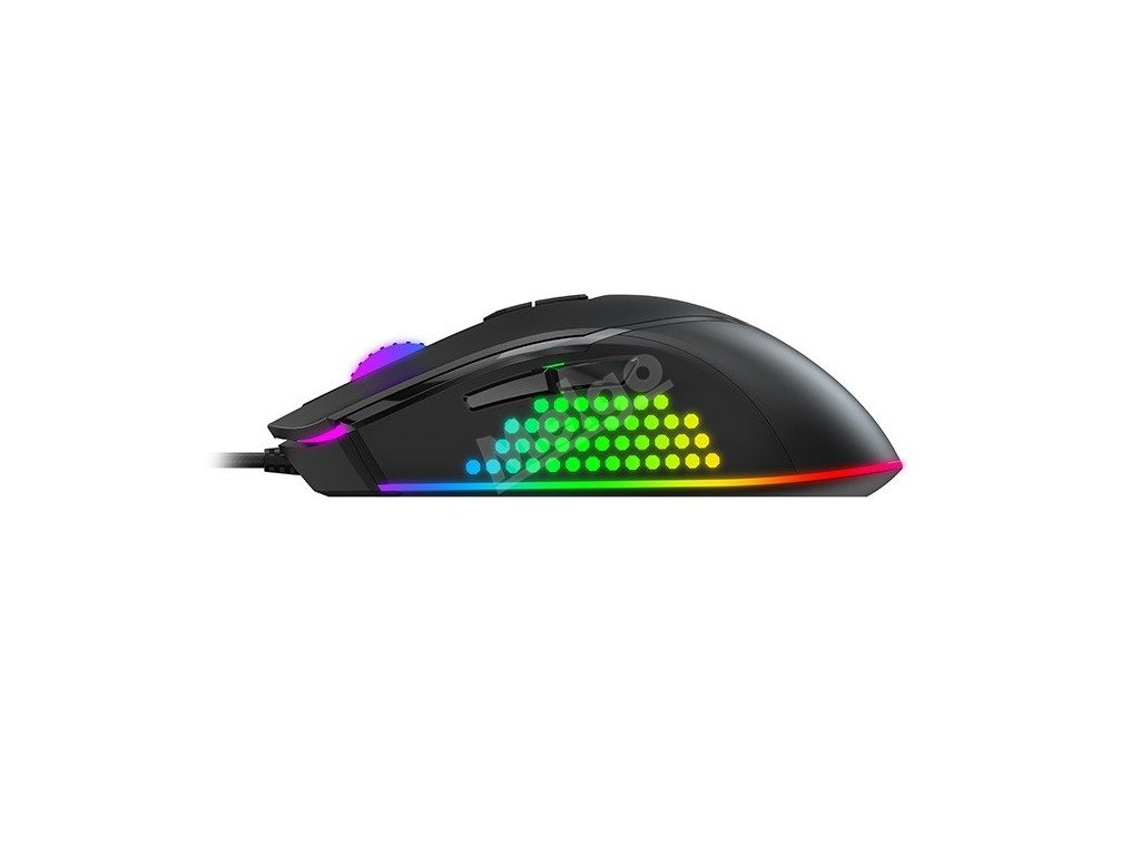 Myš je starostlivo profilovaná a vyrobená z vysoko kvalitných materiálov, ktoré zabraňujú unaveniu vašich rúk počas hodín zábavy. Okrem toho je vybavený optickým snímačom, ktorý je možné nastaviť v 6 úrovniach citlivosti: 1000-2000-3000-4000-4000-6000-7000 DPI, takže môžete ideálne upraviť ideálnu rýchlosť pre daný okamih.