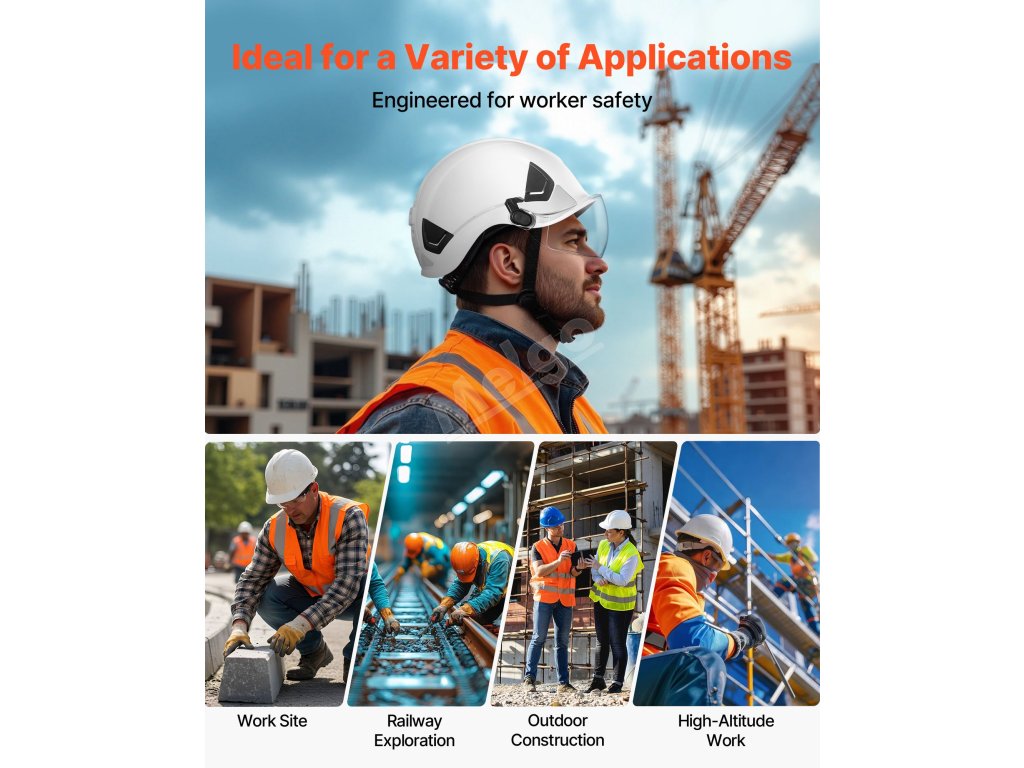 Bezpečnostní přilba s certifikací ANSI/ISEA Z89.1 má pevnou, ale lehkou skořepinu z ABS, která chrání před nárazem a úrazem elektrickým proudem. Šestibodové zavěšení s ráčnovým knoflíkem je vhodné pro velikosti 20,87 až 25,2 palce/53 až 64 cm a poskytuje prodyšné, bezpečné a pohodlné nošení po celý den.