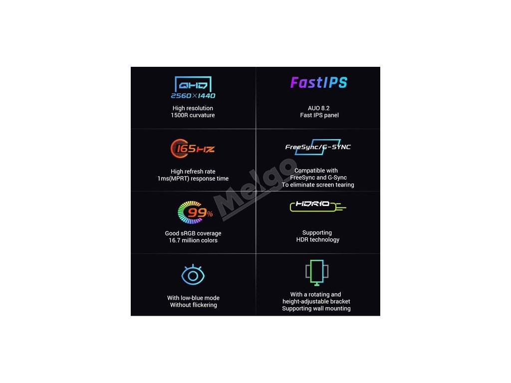 | Rozhraní | 1 x HDMI 2.0 (2560×1440@144Hz) 2 x DP 1.2 (2560×1440@165Hz) 1 x USB 2.0 (pouze pro upgrade) 1 x audio výstup |