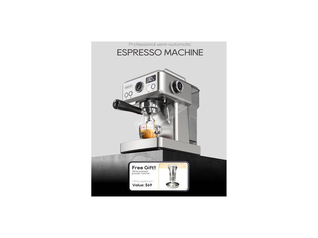 | Obsah balení | 1 x Kávovar 1 x miska na prášek pro jeden šálek 1 x Miska na prášek pro dva šálky 1 x Lžíce na pudr s kartáčovou hlavou 1 x 350ml džbán 1 x 58mm pěchovadlo na kávu 1 x 58mm filtr s rukojetí 1 x Návod k použití 1 x mlýnek na kávu G2  |