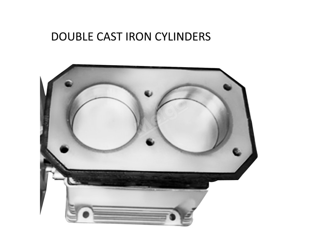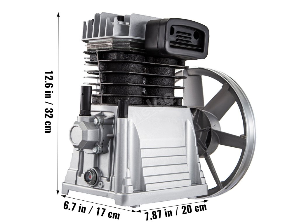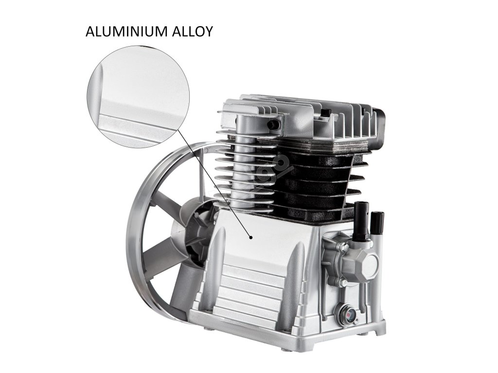 Toto čerpadlo vzduchového kompresoru o výkonu 3 hp s litinovými válci a odolným hliníkovým tělem má vysokou tepelnou vodivost a je vhodné do prašného prostředí.