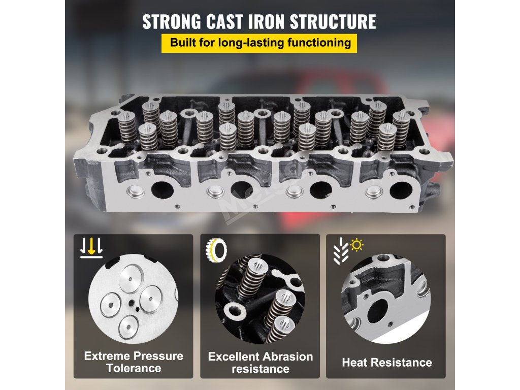 Tato hlava válce je vyrobena z průmyslové litiny. Díky tomu odolává vysokému tlaku, přehřátí a korozi. Nedeformuje se a nepraská snadno, což zajišťuje dlouhou životnost.