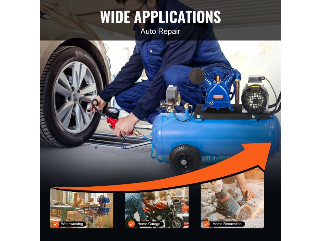 Toto dvouválcové vzduchové kompresorové čerpadlo má široké využití při opravách automobilů, v truhlářských dílnách, domácích garážích, při renovacích atd. Zajišťuje spolehlivou dodávku vzduchu pro splnění různých potřeb nafukování a zvýšení efektivity práce.