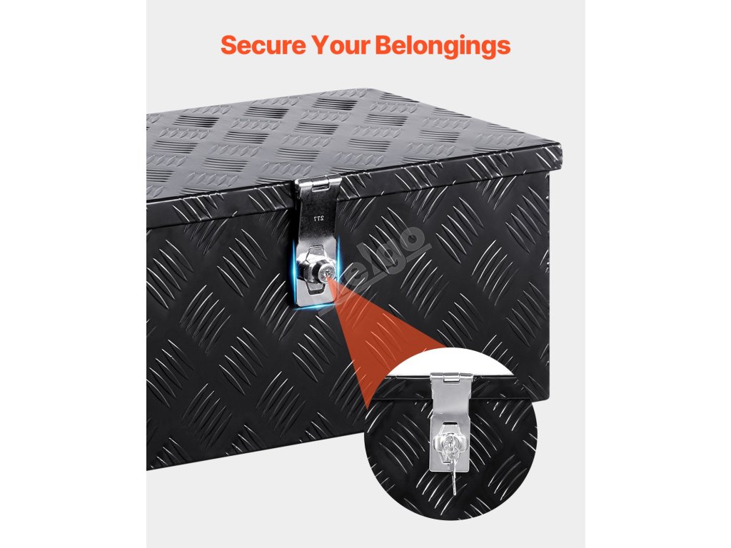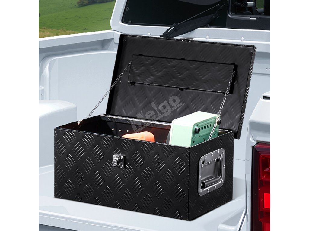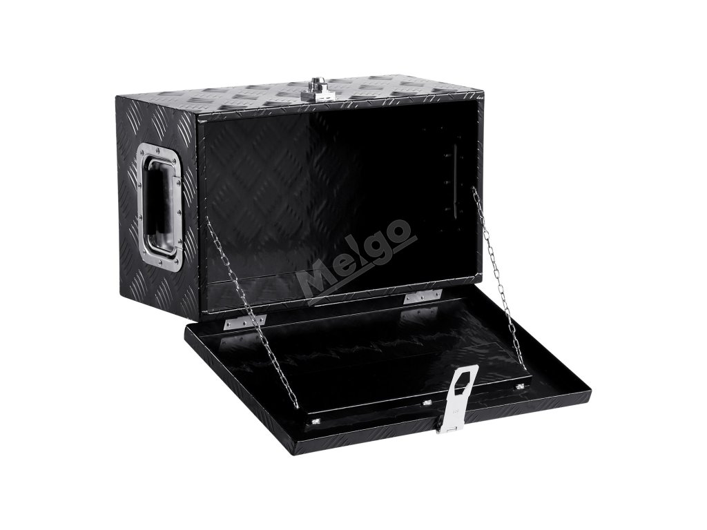 Hliníková bedňová skříňka na nástroje s zámkem, 20"×12"×9.5", černá