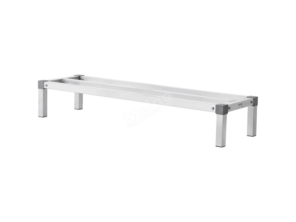 Hliníkový regál pro potraviny 48”×14”, 8” nad podlahou, nosnost 1000 lbs