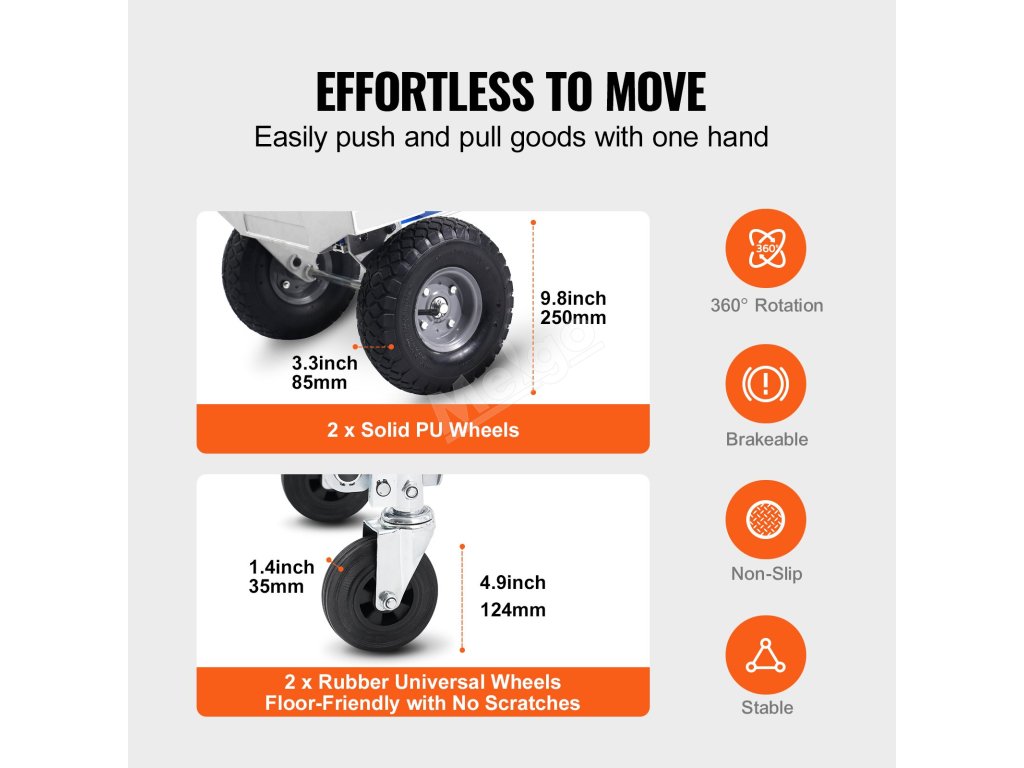 | Rozměry ručního vozíku | 19.7 "D x 18,1 "Š x 51,6 "V/500 x 460 x 1310 mm |