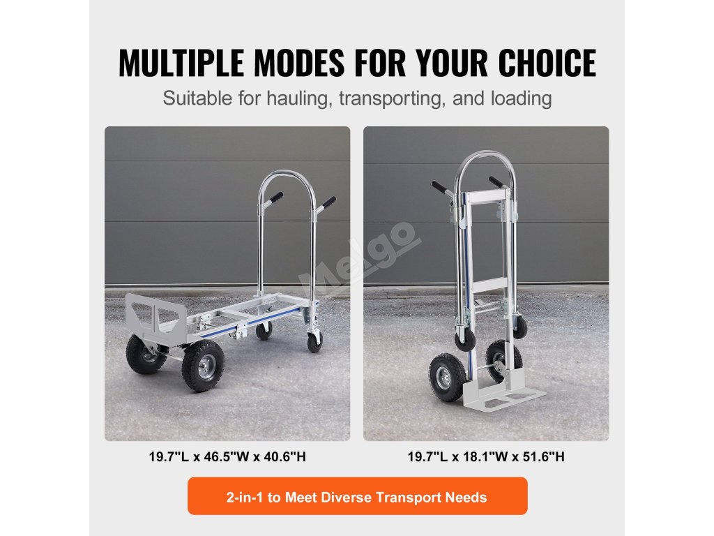 Hliníkový skládací ruční vozík 2v1, nosnost 362,9 kg, pryžová kolečka
