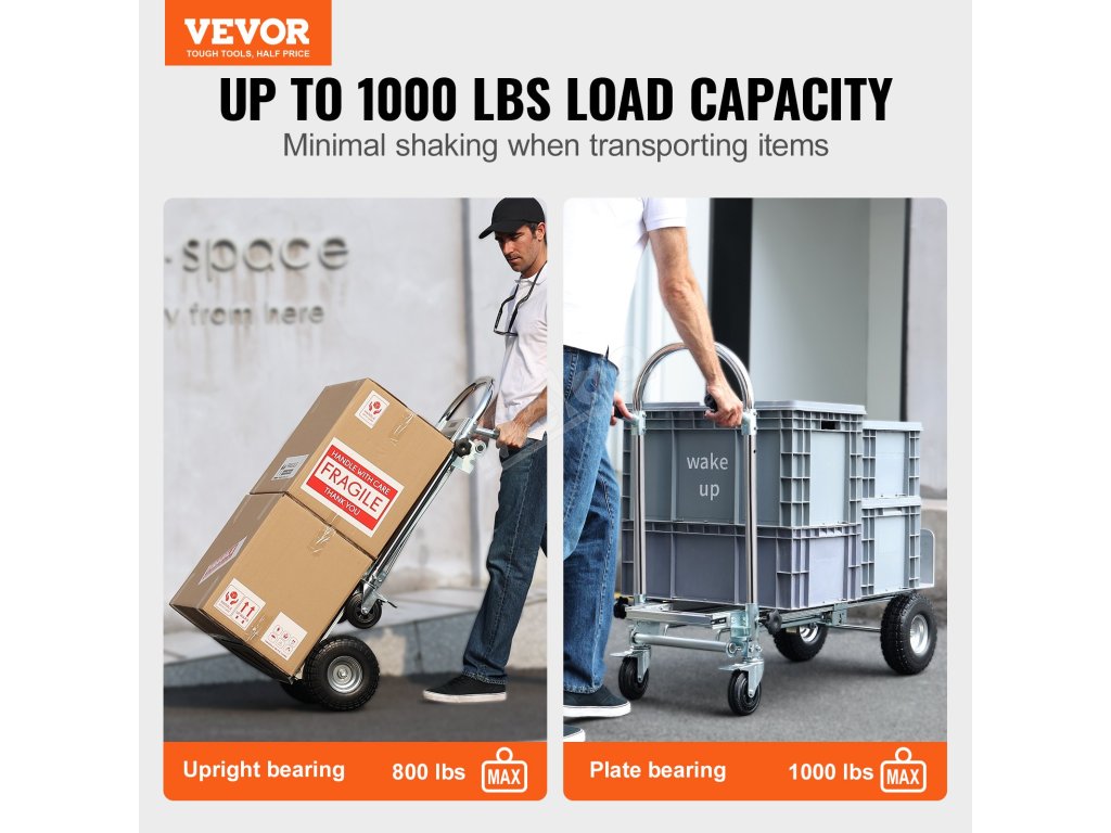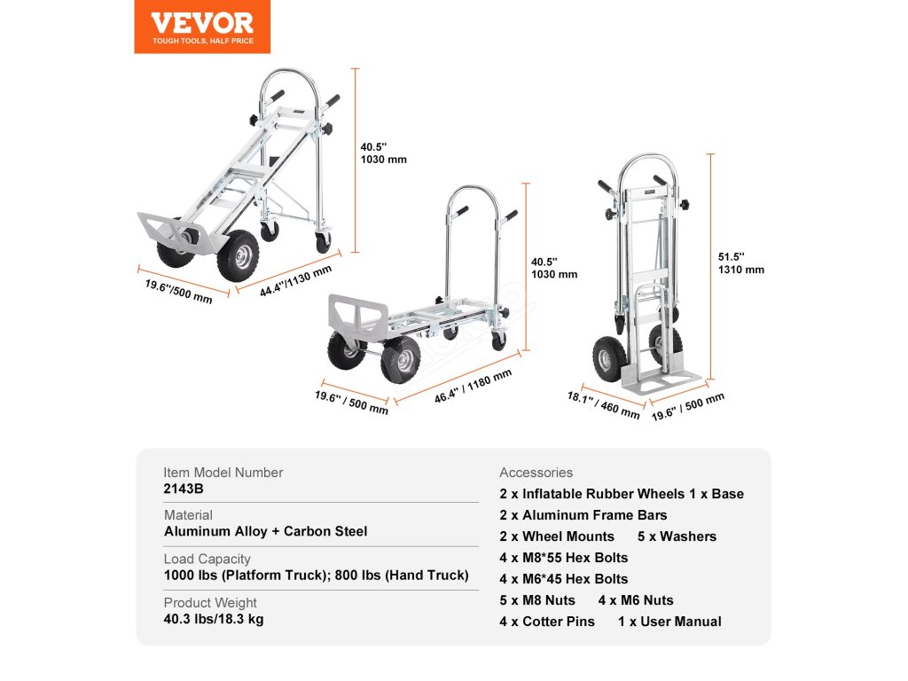 | Nosnost | 1000 lbs/454 kg (plošinový vozík); 800 lbs/363 kg (ruční vozík) |
