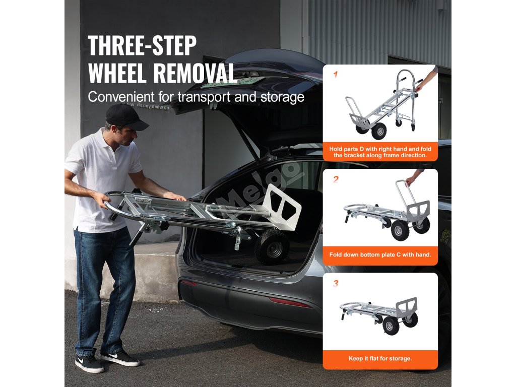 Po skončení práce tento skládací ruční vozík jednoduše složíte a uložíte do kufru. Tento šetřič místa vám bude k dispozici, kdykoli ho budete potřebovat, ať už budete nakupovat potraviny nebo přenášet hory.