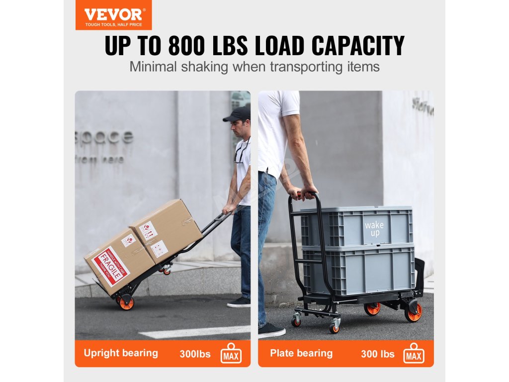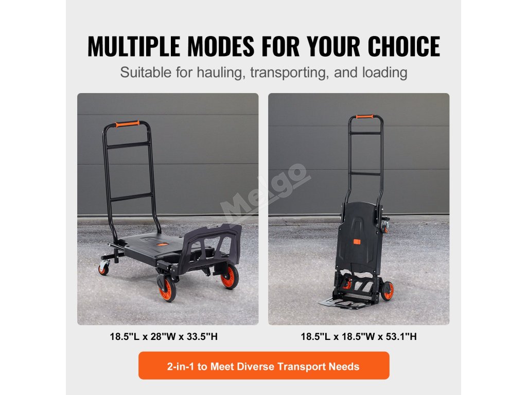 Náš skládací ruční vozík se během několika sekund změní z dvoukolového ručního vozíku na čtyřkolový plošinový vozík. Díky robustní nosnosti až 300 kg je zvedání těžkých předmětů hračkou.