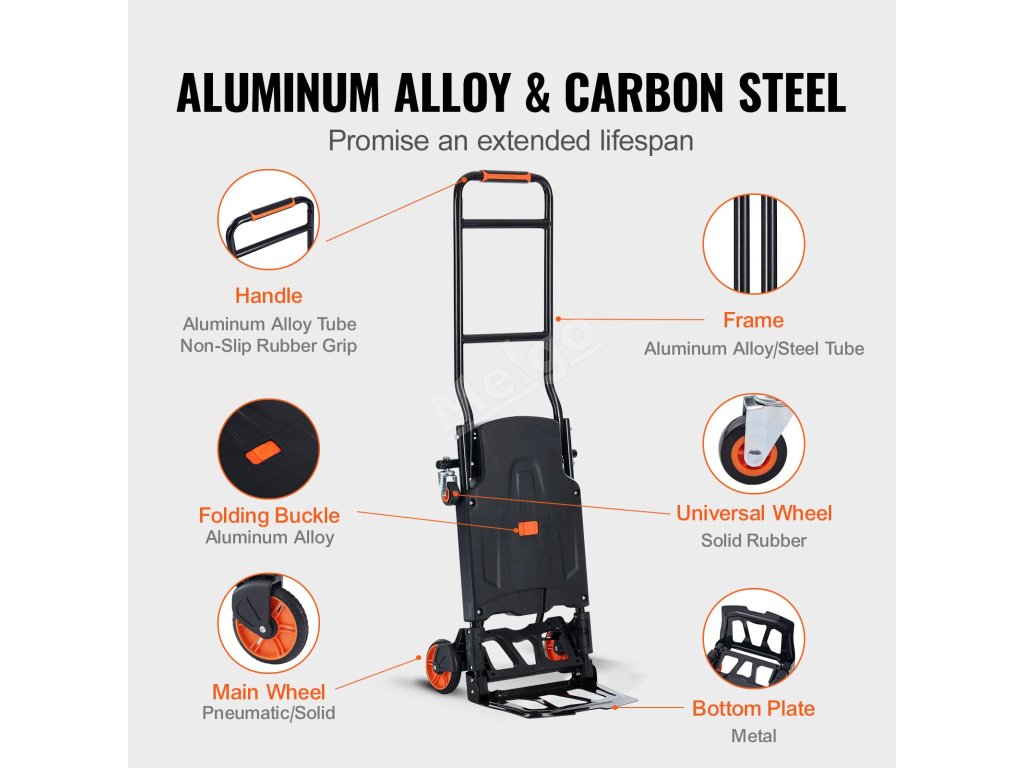 Hliníkový skládací vozík 2 v 1, nosnost 136.1 kg, pryžová kola